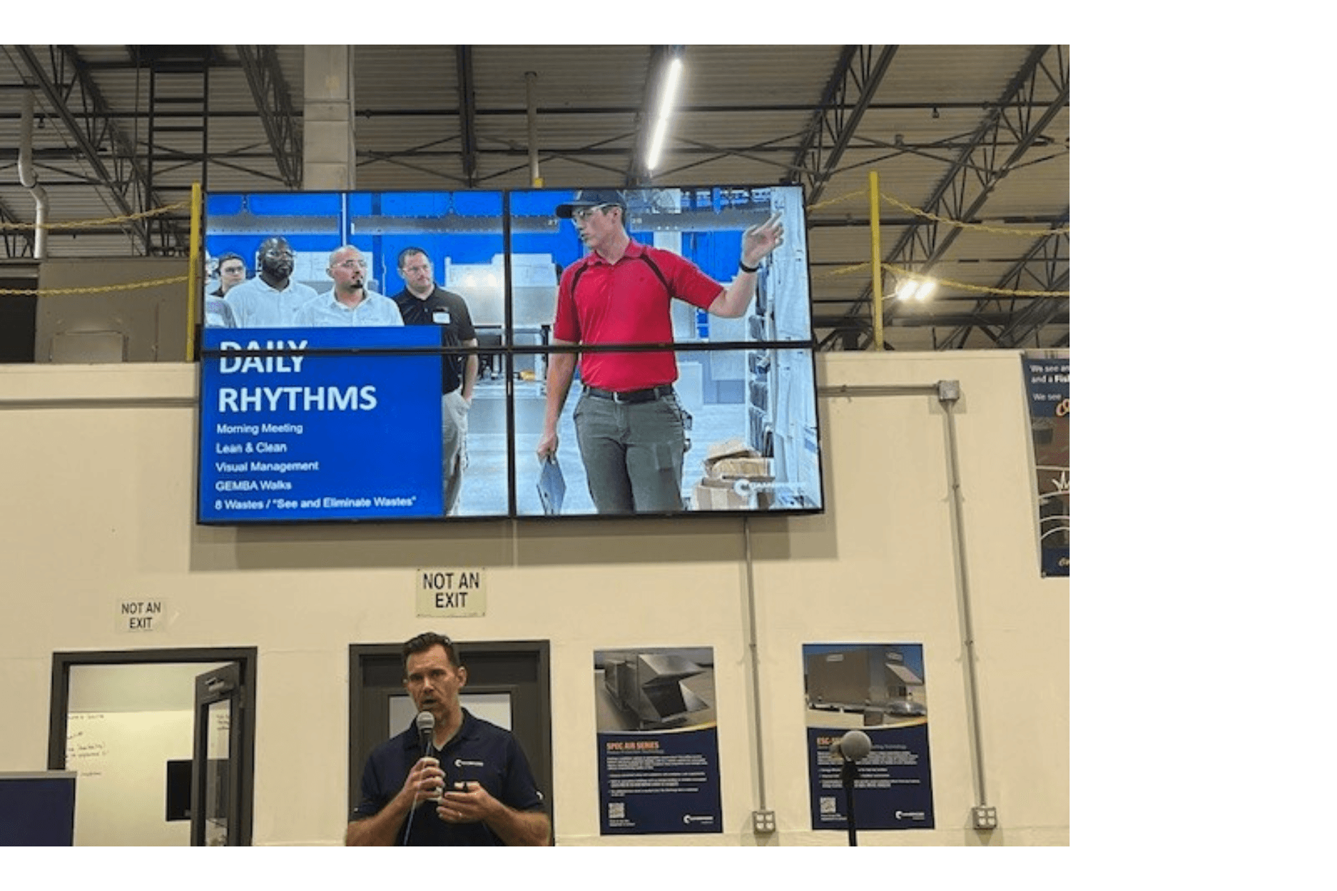 I had the pleasure of interviewing Cambridge Air Solutions COO, Meg Brown, before the conference and was inspired by their dedication to provide “unconditional love” to employees. Touring their Wentzville, MO facility was a masterclass in humility and shared ownership. This is a company that canceled its janitorial service so every employee, including the CEO John Kramer, Jr., could take responsibility for their workspace. Morning meetings are volunteer-led, and visual boards track not only performance but also how many lives they aim to enrich.